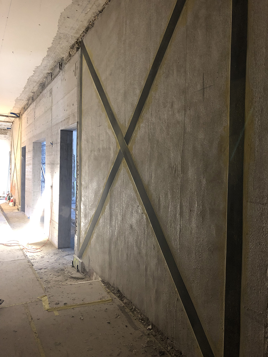 Als Teil des Generalplaner-Teams um GFA Gruppe für Architektur verantwortete Lüchinger+Meyer die Belange der Tragwerksplanung. Der Schwerpunkt lag hierbei auf der Planung und Ausführung von umfangreichen Ertüchtigungsmassnahmen im Hinblick auf die Erdbebensicherheit des Gebäudes. So wurden beispielsweise teils mehrgeschossige neue Wandscheiben aus Beton erstellt, bestehende Wände mit CFK-Lamellen verstärkt oder bereits verschlossene Türoffnungen mit einer kraftschlüssigen Ausmauerung versehen.
