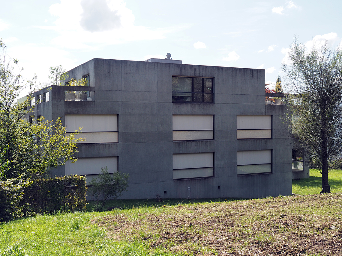 Die Wohnüberbauung Heimeli setzt sich aus drei einzelnen Gebäuden, die sich um eine zentral angeordnete, unter Terrain liegende Tiefgarage gruppieren, zusammen. Die zweischalig aufgebaute Aussenhülle besteht aus einer inneren, tragenden Schale aus Mauerwerk oder Beton, einer Isolation aus extrudiertem Polystyrol und einer Sichtbetonfassade, die an Ort erstellt wurde. Die fugenlose Ortsbetonfassade mit ihren grossen Fensteröffnungen wird nach ihrer Erstellung sandgestrahlt und mit Farbe gestrichen. Einen besonderen Hinweis verdienen die auskragenden Loggiakonstruktionen. Für die vertikalen Lasten wirkt die Loggiafassade als Virendeelträger, der die Lasten auf die benachbarten, seitlichen Fassaden überträgt.